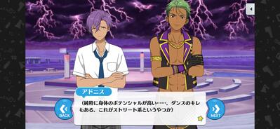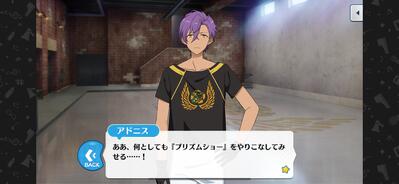 サマーバカンスを始めとして英智くんとアドニスくんが絡むお話好き民なので今回も楽しかったです!社交パーティーに一彩くんとアドニスくん伴って参加する英智様という構図が良すぎ。つよつよ。スチルにもがっつり映り込んで…貴重な角度のアドニスくんをありがとうございます。
